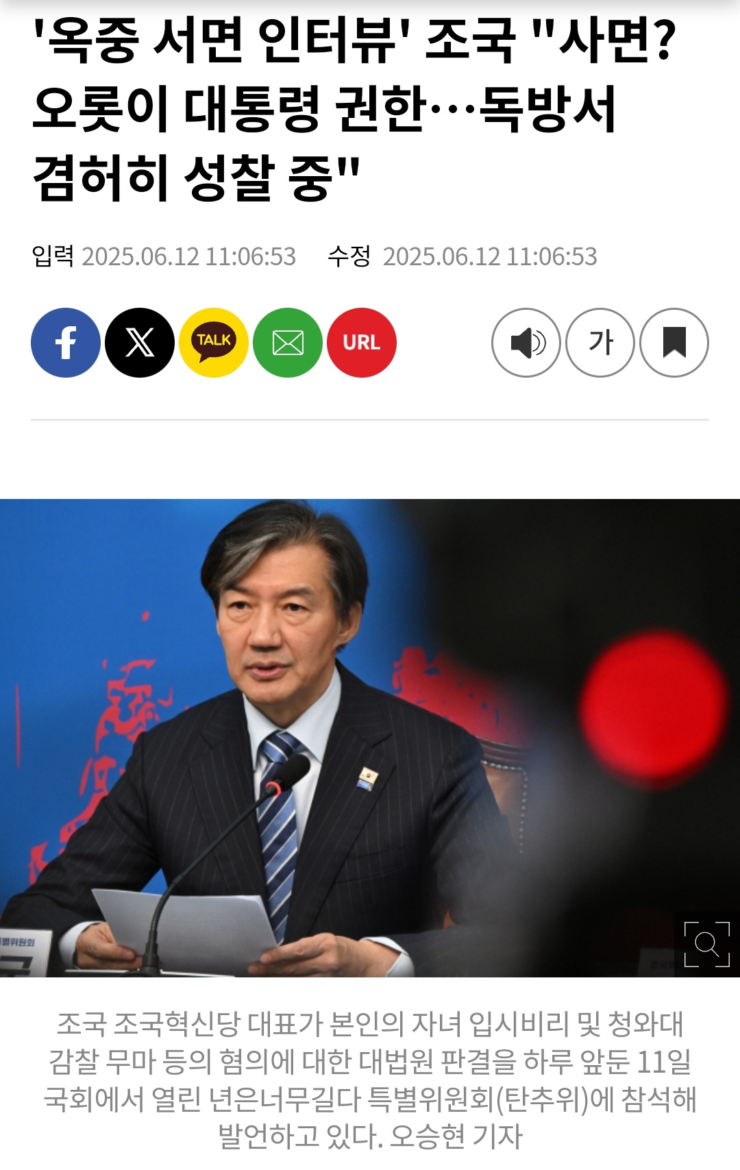 ✅ 조국 전 장관 ‘특별사면’ 입장 요약